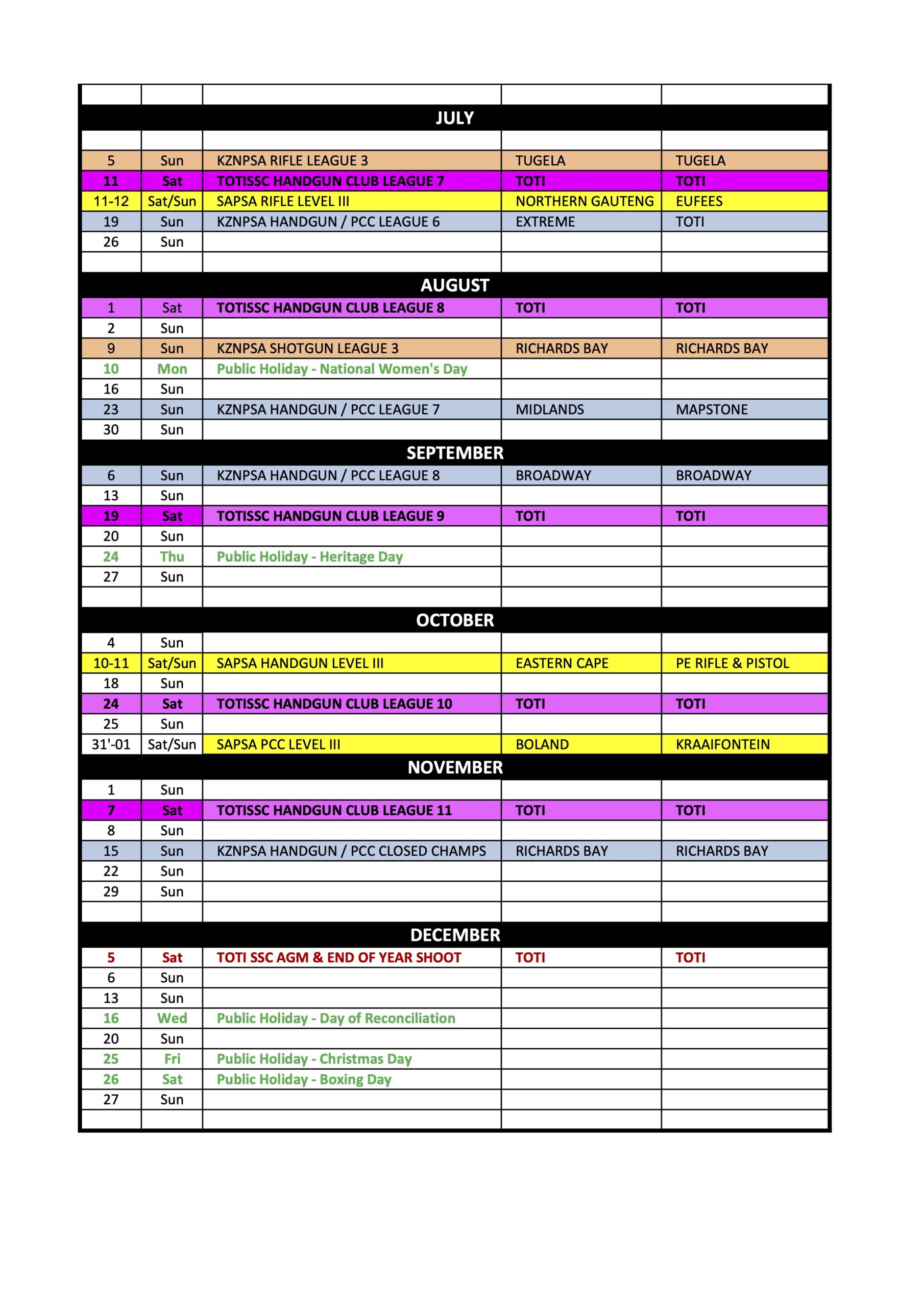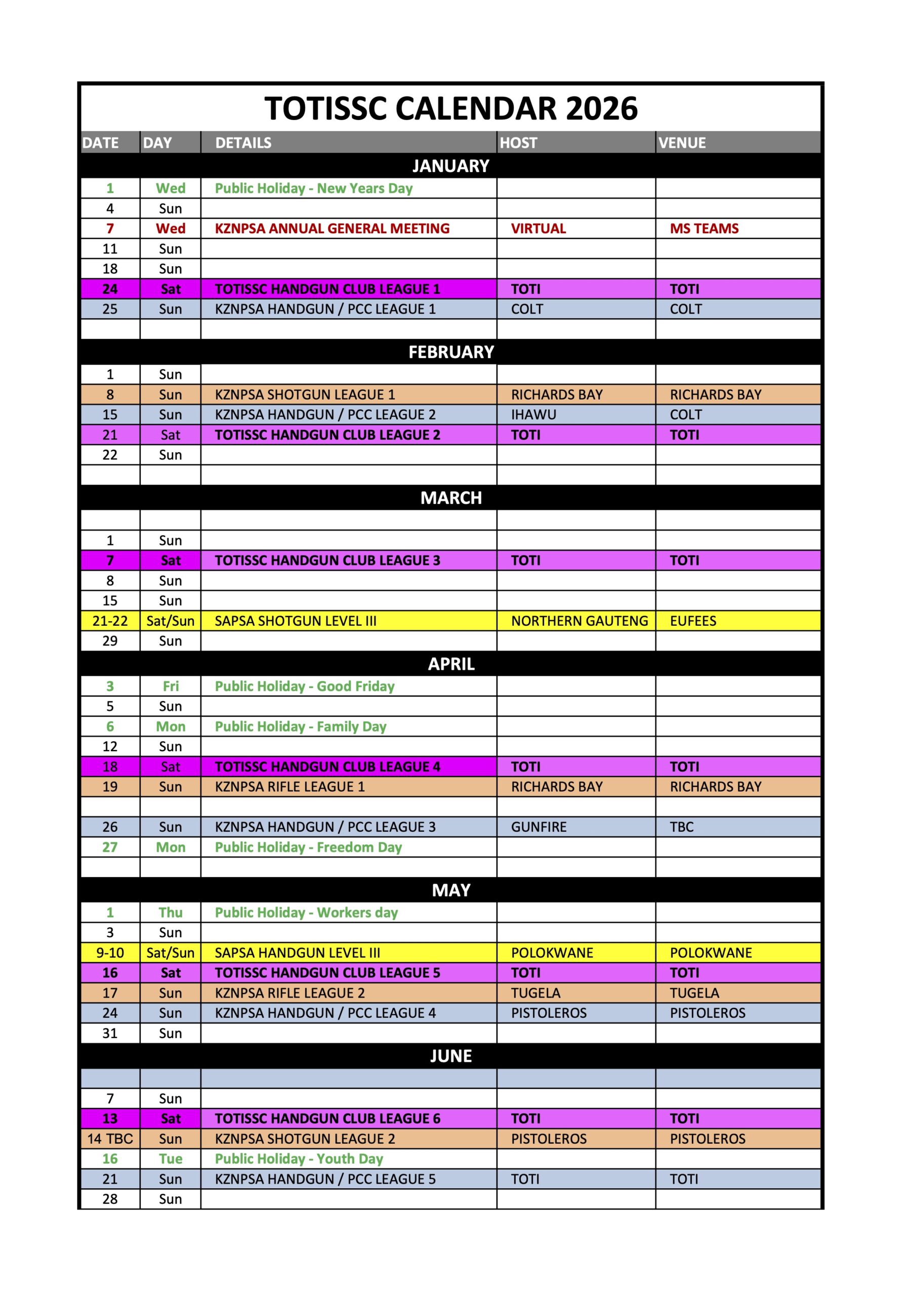 Results for TSSC club shoots are available on Practiscore.com 2026 Club Shoot Calendar Download 2026 TOTISSC CALENDAR.pdf January – June July-December